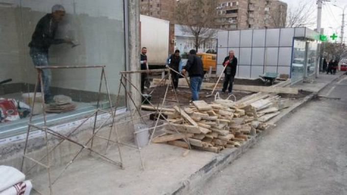 «Ես կանգնած եմ Մալաթիա թաղամասի Րաֆֆու փողոցի գազոնի վրա ու նկարում եմ գազոնի շարունակության վրա մեծ թափով կառուցվող կրպակների շարքը: Այս կրպակների շինթույլտվությունները տրվել են տարեկան 25 հազար դրամով, կառուցվելուց հետո դրանց տերերը վարձով կտան ամսական տասը անգամ ավել գումարով։