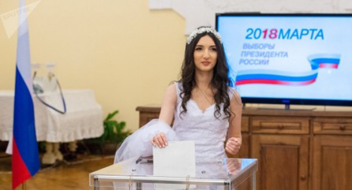 Երևանում ընտրողը հարսի շորով եկել էր քվեարկության հարսանիքից առաջ: ՀՀ-ում ՌԴ դեսպանատանը տեղակայված թիվ 8026 ընտրական տեղամասում նրա մուտքը մեծ հետաքրքրություն էր առաջացրել: «Շատ կարևոր օր է Ռուսաստանի համար: Ես պսակադրվելուց առաջ եմ եկել ընտրության, հայրիկիս հետ գնում ենք եկեղեցի»,-«Արմենպրես»-ի հաղորդմամբ՝ լրագրողներին պատմեց հարսնացուն՝ Արուսյակ Օլքինյանը: