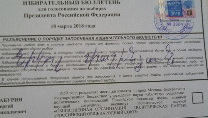 ՌԴ նախագահի ընտրությունների քվեաթերթիկ՝ «Նիկոլ Փաշինյան» գրությամբ/լուսանկար/