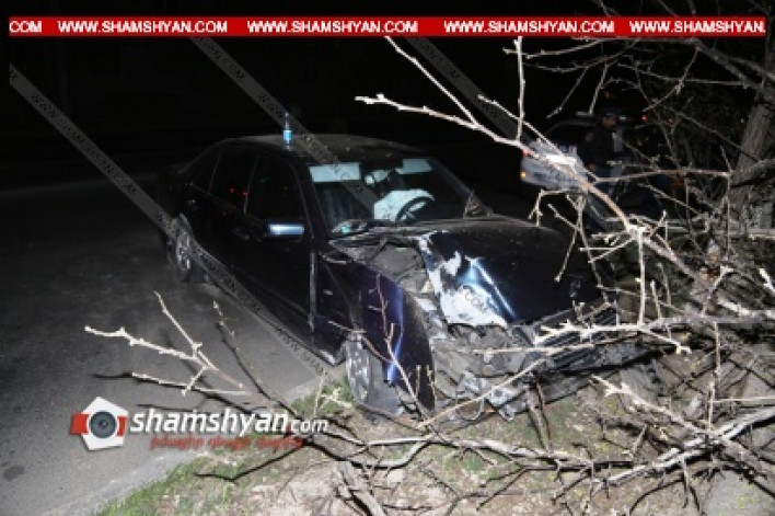 Երևանում բախվել են Nissan-ն ու Mercedes-ը. վերջինն էլ կոտրել է ցուցանակն ու արմատախիլ արել հաստաբուն ծառը. ՖՈՏՈՌԵՊՈՐՏԱԺ
