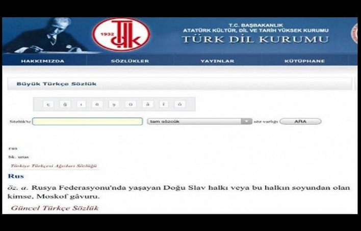 Թուրքիայի լեզվաբանական ընկերության (TDK) կայքի էլեկտրոնային բացատրական բառարանում «ռուս» բառի բացատրությունը ներկայացվում է նաև բացասական երանգով ու վիրավորական շեշտադրումով: