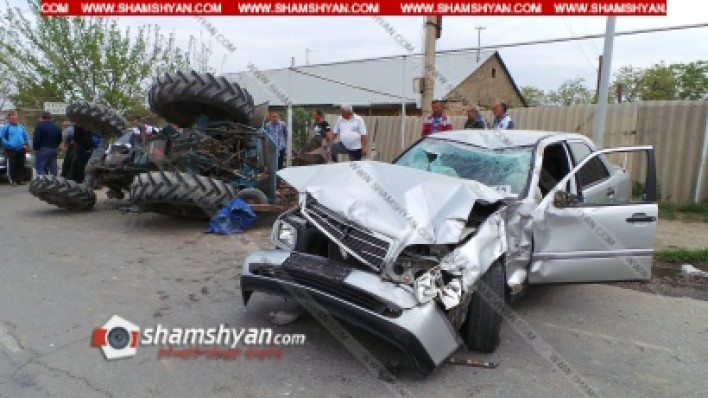 Այսօր՝ ապրիլի 11-ին, խոշոր ավտովթար է տեղի ունեցել Արարատի մարզում։ Ժամը 10։00-ի սահմաններում Մասիս գյուղի վարչական տարածքում բախվել են Mercedes մակնիշի 35 LF 415 համարանիշի և տրակտոր MTZ 82 մակնիշի և Վազ 2106 մակնիշի 25 ԼՍ 032 համարանիշի ավտոմեքենաները։ Ինչպես դեպքի վայրից հայտնում է ֆոտոլրագրող Գագիկ Շամշյանը, վթարի հետևանքով 1 հոգի տեղափոխվել է Արտաշատի բժշկական կենտրոն։ Վարորդներին և վիրավորին առաջինը օգնության են հասել գյուղացիները, և քաղաքացիներն են իրենց ավտոմեքենայով վիրավորին տեղափոխել հիվանդանոց։ Դեպքի վայրում հավաքվածներն ասում էին, որ վիրավորին հիվանդանոց է ուղեկցել ճանապարհային ոստիկանության 2-րդ սպայական գումարտակի 1-ին վաշտի հրամանատար Տիգրան Գրիգորյանը։ Բախման հետևանքով տրակտորը կողաշրջվել է, Mercedes-ն էլ մասամբ փակել երթևեկության գոտու հատվածը։ Այս պահին վթարի վայրում ուժեղացված ծառայություն են կատարում ՃՈ 2-րդ սպայական գումարտակի 1-ին վաշտի 2-րդ դասակի ծառայողները՝ դասակի հրամանատար Սանասար Հարությունյանի, տեսուչներ Արմեն Ներսիսյանի և Արման Բագրատյանի գլխավորությամբ։ Վթարի մասին ՃՈ 1-77 օպերատիվ կառավարման կենտրոնի պատասխանատու հերթապահ Գեղամ Մարգարյանը տեղեկությունը փոխանցել է ոստիկանության Արտաշատի բաժին, որտեղից ժամանել է օպերատիվ խումբը՝ բաժնի պետ Արթուր Հովհաննիսյանի գլխավորությամբ։ Փաստի առթիվ ՃՈ 2-րդ սպայական գումարտակի 1-ին վաշտի հետաքննիչ Գեղամ Գրիգորյանի կողմից նյութեր են նախապատրաստվում։ Ճանապարհային ոստիկանությունը պարզում է վարորդների և վիրավորի ինքնությունը։ Ծանուցում. Ենթադրյալ հանցանքի մեջ կասկածվողը կամ մեղադրվողը համարվում է անմեղ, քանի դեռ նրա մեղավորությունն ապացուցված չէ ՀՀ քրեական դատավարության օրենսգրքով սահմանված կարգով` դատարանի` օրինական ուժի մեջ մտած դատավճռով: Լուսանկարները՝ Գագիկ Շամշյանի
