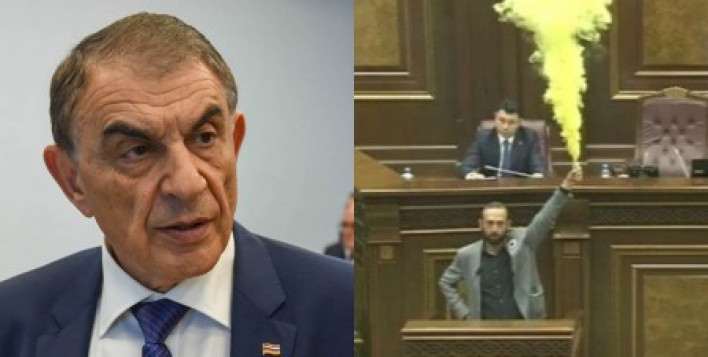 ԱԺ «Ելք» խմբակցության պատգամավորներ, «Քաղաքացիական պայմանագիր» կուսակցության անդամ Արարատ Միրզոյանն ու Լենա Նազարյանն այսօր Ազգային ժողովում յուրահատուկ ակցիա արեցին:Արարատ Միրզոյանը մոտեցավ ամբիոնին ու ելուրթ ունեցավ, գրպանից հանելով ֆայեր և վառեց այն: Դահլիճում գունավոր ծուխ բարձրացավ՝ կանաչ ու դեղին։ Նրան միացավ նաև նրա գործընկեր Լենա Նազարյանը, որը տեղից վեր կացավ ու երկու ձեռքին վեր պարզած ֆայերը՝ մոտեցավ ամբիոնին։
