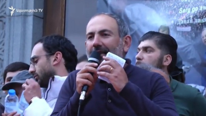 Ազատության հրապարակում մեկնարկած հանրահավաքում ԱԺ պատգամավոր Նիկոլ Փաշինյանն իր ելույթում հիմնական շեշտը դրել է Սերժ Սարգսյանի ղեկավարած տարիների բացթողումները ջրի երես հանելու վրա: «ՀՀԿ-ի ու Սերժ Սարգսյանի մաֆիոզ իշխանությունից ազատագրվելու կարիք ունի ժողովուրդը, և մենք նվիրած ենք այդ ազատագրման նպատակին. այո, սա ազատագրության ժամն է: Մենք ՀՀ քաղաքացուն ասում ենք՝ սիրելի հայրենակից, քայլ արա, մերժիր Սերժին: Սերժ Սարգսյանն ապրիլի 9-ին հեռացել է իշխանությունից ու մեր խնդիրն է՝ թույլ չտալ, որ վերադառնա, դրա համար էլ ասում ենք՝ քայլ արա, մերժիր Սերժին»,- ասաց Փաշինյանը: Նա անդրադարձավ Սերժ Սարգսյանի փեսա Միքայել Մինասյանի պարգևներին, եղբոր՝ Ալեքսանդր Սարգսյանի պաշտոններին՝ հավելելով, որ Սերժ Սարգսյանը մտահոգված է սեփական ընտանիքի բարեկեցությամբ, այլ ոչ՝ ժողովրդի խնդիրներով: «Սերժ Սարգսյա՛ն, դու քանդել ես մեր առաջնագիծն ու անվտանգությունը, դրանո՞վ ես անփոխարինելի: Դու միայն կարողանում ես ապահովել քո անձնական անվտանգությունը զրահապատ մեքենայի մեջ, որի վրա ես 300 հատ թռուցիկ շպրտեցի»,- հավելեց նա: