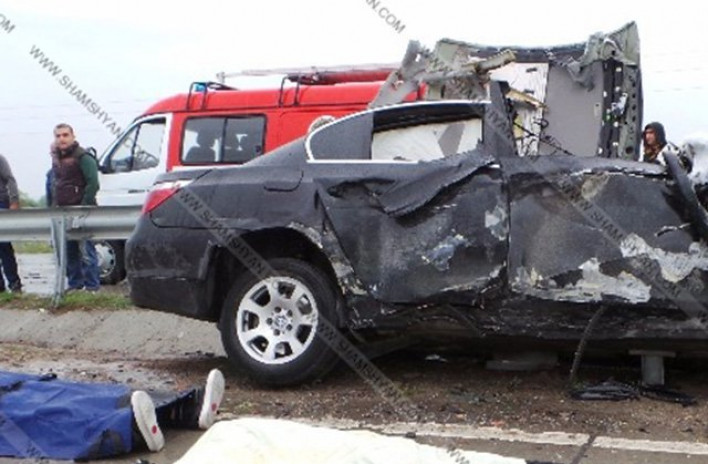 Ապրիլի 13-ին՝ ժամը 08.50-ի սահմաններում, «ԲՄՎ 525» մակնիշի ավտոմեքենայի 34-ամյա վարորդ Արման Հախնազարյանը Երևան-Երասխ ճանապարհի 17-րդ կմ-ին դուրս է եկել ճանապարհի երթևեկելի գոտուց և բախվել ճանապարհի բաժանարար մասի երկաթյա արգելապատնեշին, ինչի հետևանքով Արման Հախնազարյանը և վերջինիս ուղևորուհի՝ 1982 թ. ծնված Լուսինե Պողոսյանը, տեղում մահացել են, իսկ 1991 թ. ծնված Արմենուհի Ս.-ն մարմնական վնասվածքներով տեղափոխվել է հիվանդանոց:
