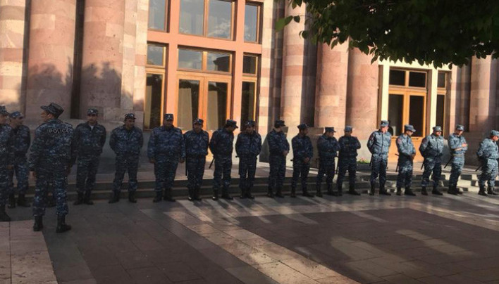 «Ազատության» տեսանյութում երևում է՝ ինչպես են ոստիկանները շրջափակել Մելիք-Ադամյան փողոցում գտնվող ՀՀԿ-ի գրասենյակն ու Կառավարության շենքը: Ուժեղացված հսկողություն է իրականացվում, տեղադրված են արգելապատնեշներ: