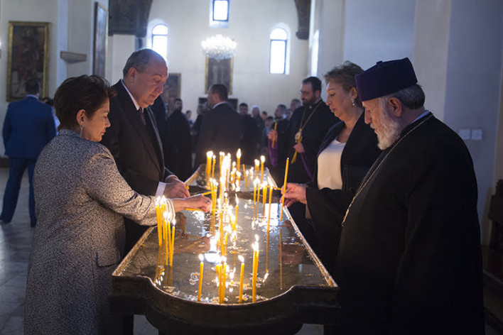 Ամենայն Հայոց Կաթողիկոս Գարեգին Բ-ն երկու օր առաջ Մայր Աթոռում ընդունել է ՀՀ նորընտիր նախագահ ԱՐՄԵՆ ՍԱՐԳՍՅԱՆԻՆ եւ առաջին տիկնոջը՝ ՆՈՒՆԵ ՍԱՐԳՍՅԱՆԻՆ: Իսկ հանդիպումից հետո՝ նրանք այցելել էին Մայր Տաճար: «Իրավունքի» աչքից չվրիպեց այն, որ տիկին Նունեն առանց գլխաշորի էր: Գուցե տեղյակ չէր եկեղեցու այցելելու կանոնից կամ իրեն չէր զգուշացվել, բայց, ամեն դեպքում, բավական է նայել շուրջը եւ տեսնել, թե ինչպես են այլ երկրների առաջին տիկնայք ներկայանում եկեղեցում: Ի դեպ, հետեւելով նաեւ նորաձեւությանը եւ օրինակ ծառայելով մյուսներին: