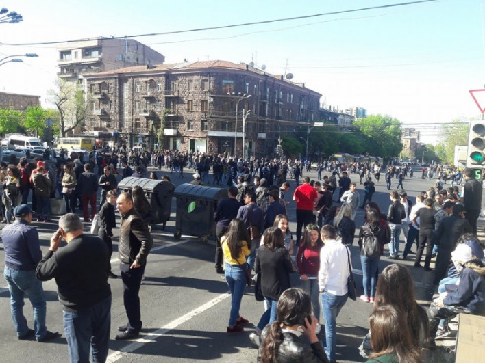 Աբովյան պուրակի մոտ Բժշկական համալսարանի մոտակայքում ևս լարված իրավիճակ է,ուսանողները փակել են պողոտան: