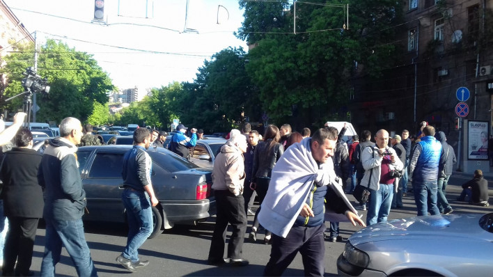9:03- Մոսկովյան Բաղրամյան խաչմերուկը փակ է, Փակ է Մաշտոցի փողոցը, ամենուր ավտոբուսներ են, մեքենաներ, որոնք կամովին կամ ստիպված միանում են ցույցերին: Ցուցարարները շղթա բռնած չեն թողնում անցուդարձը: Այս պահին Բաղրամյանի կողմից արդեն անհնար է Ազգային Ժողովի շենք մուտք գործելը: Վարորդներից մեկը Կորյունի մոտ մեքենան կայանեց, հանեց համարանիշներն ու միացավ ցուցարարներին: ավտոբուսներից մեկը փողոցի երկայնքով կաթվածահար արեց երթեւեկությունը: