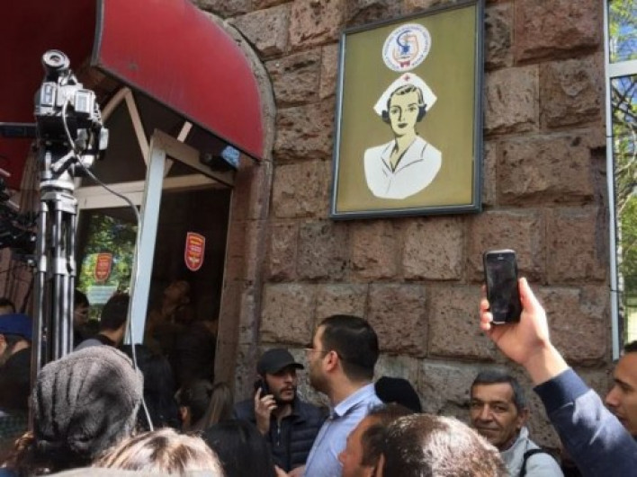 Նիկոլ Փաշինյանի հետ ցուցարարները՝ կոտրելով Երևանի պետական հենակետային բժշկական քոլեջի դուռը մուտք են գործել շենք և կոչ են անում ուսանողներին միանալ ակցիային և դասադուլ անել: