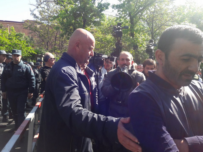 Նիկոլ Փաշինյանն իր համախոհների հետ անցավ Կորյունի փողոցով, որտեղ ցուցարարները մի պահ կանգ առան ՀՀ նախագահ Արմեն Սարգսյանի նստավայրի մոտ։ Նիկոլ Փաշինյանը կոչ արեց չսուլել այնտեղ ծառայություն իրականացնող ոստիկաններին։