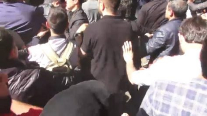 Նիկոլ Փաշինյանը վնասվածք է ստացել ականջի հատվածում։ Նա փորձում է պաշտպանել մի խումբ երիտասարդ ակտիվիստների, որպեսզի ոստիկանությունը նրանց բերման չենթարկի։ Կան վիրավորներ։