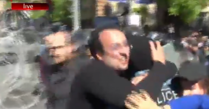 Ցուցարարները գրկեցին ոստիկանին. նկար