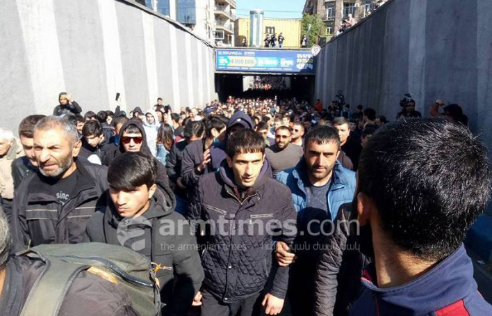 Ցուցարարները «Իմ քայլը» նախաձեռնության առաջնորդ, «Քաղաքացիական պայմանագիր» կուսակցության քաղխորհրդի անդամ Նիկոլ Փաշինյանի գլխավորությամբ Խորենացի փողոցով քայլելեվ փակեցին նաեւ Տիգրան Մեծի պողոտան,մի պահ նստեցին փողոցում: