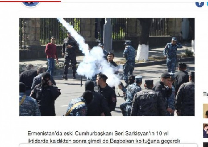 Թուրքական մեդիադաշտը գրեթե ամբողջությամբ անդրադարձել և մանրամասնորեն ներկայացնում է Երևանում կատարվողը: Թուրքական մեդիադաշտի լուրերը կարելի է ասել նույնաբովանդակ է.«Սերժ Սարգսյանը, ով 10 տարի նախագահ էր, դարձավ վարչապետ: «Ելք» դաշինքի ղեկավար Նիկոլ Փաշինյանը հակակառավարական ցույցեր է անցկացնում, արգելափակվել են փողոցներ և պետական հիմնարկների շենքեր: Հակակառավարական ցույցեր են Գյումրիում, Վանաձորում, Իջևանում, Մեծամորում: Չի աշխատում , կամ մասամբ է աշխատում մետրոն, «Կիլիկիա» ավտոկայանը գործում է ընդհատումներով: Հայտարարվել է թավշյա հեղափոխության մասին: Ոստիկանությունը մեծ քանակությամբ ուժ է կուտակել Երևանի կենտրոնում»: