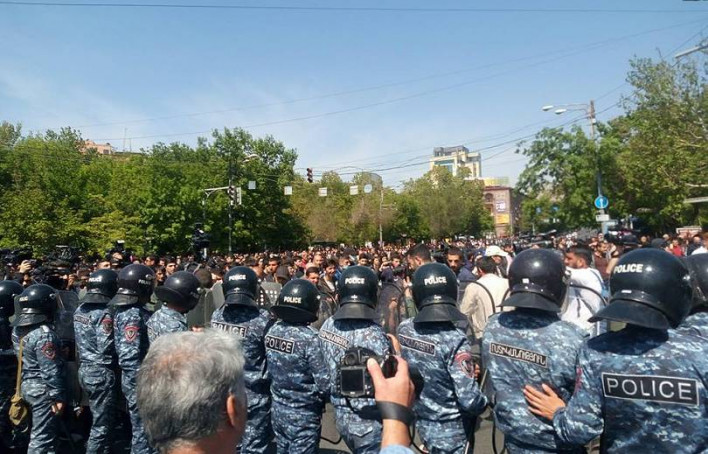 Ֆրանսիայի հրապարակից ոստիկանները շուրջ մեկ տասնյակ ցուցարարների բերման ենթարկեցին: Ոստիկանությունը մի քանի շարք` մեծ քանակությամբ ոստիկաններով զրահներով եւ սաղավարտներով փակել է Մաշտոցի պողոտան: