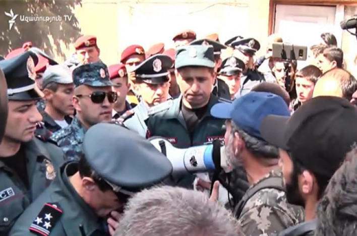 «Իմ Քայլը» շարժման ցուցարարները «Փեթակ» առևտրի կենտրոնի տարածքում են: Այստեղ լարված իրավիճակ է, քանի որ ոստիկանները վանկարկում են, որ առևտրականները միանան իրենց, իսկ ոստիկանները շրջափակել են կենտրոնի մուտքն ու չեն թողնում Նիկոլ Փաշինյանին ու ցուցարարներին մուտք գործել:Ցուցարարները, հակառակ ոստիկանների հորդորներին, մնում են տարածքում: Այն պահին, երբ Երևանի փոխոստիկանապետ Վալերի Օսիպյանն ասաց` դուրս գալ տարածքից, ցուցարարները որոշեցին փոխել կարգախոսը. «Սուջուխ ա′ռ, մերժի′ր Սերժին»: Պատգամավորներ Նիկոլ Փաշինյանն ու Սասուն Միքայելյանը որոշեցին ներս մտնել: