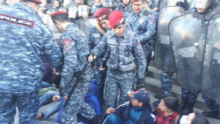 Ոստիկանները շարունակում շղթա կազմած շրջափակած պահել կառավարության 3-րդ մասնաշենքը: Ցուցարարները եւս այստեղ են, նրանք դիմելով ոստիկաններին, վանկարկում են. «Քայլ արա, զենքդ դիր վար»: