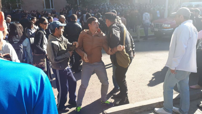 Ցուցարարներին մի շարքով ուղեկցում են ոստիկանները՝ ՀՀ փոխոստիկանապետ Վալերի Օսիպյանի անմիջական հսկողությամբ, նրանք քայլում են ցուցարարների հետ միասին: