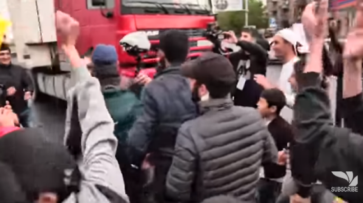 Երեք մեծ բեռնատարներ փակել են Կիևյան-Հալաբյան խաչմերուկը (Տեսանյութ)