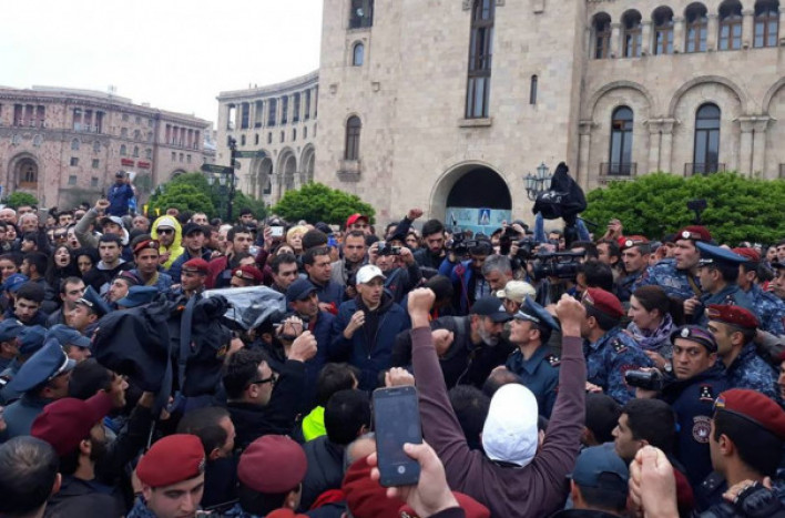 ՀՀ նախագահ Արմեն Սարգսյանը քիչ առաջ եկել էր Հանրապետության հրապարակ՝ հանդիպելու Սերժ Սարգսյանի կառավարման երրորդ ժամկետի դեմ պայքարող «Իմ քայլը» նախաձեռնության առաջնորդ Նիկոլ Փաշինյանի հետ: