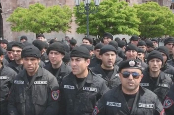 Կառավարության շենքի մոտ հավաքված ոստիկանները հանել են դիմակները և տերունական աղոթքն արտասանել, փոխանցում է «Հետք»-ը։