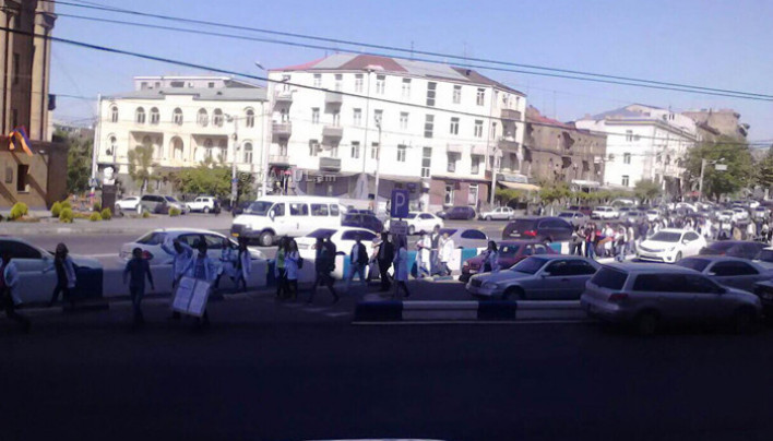 Մխիթար Հերացու անվան պետական բժշկական համալսարանի, Խաչատուր Աբովյանի անվան մանկավարժական համալսարանի և Երևանի պետական համալսարանի ուսանողները դուրս են եկել երթի՝ «դասադուլ» «միացիր» վանկարկումներով: