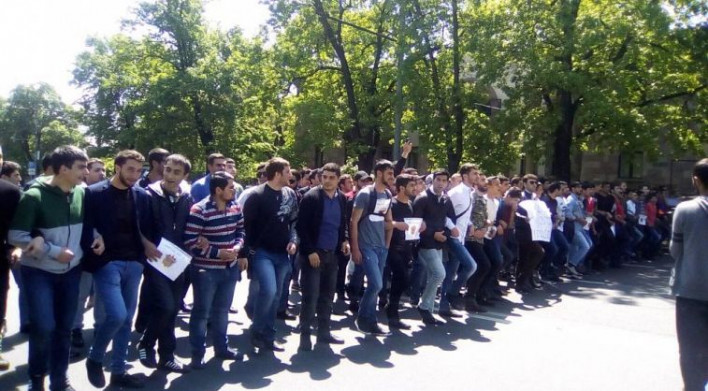 Նրանք զինվորական քայլերթով տեղից տեղ են շարժվում և միաժամանակ երգեր կատարում: Իսկ փշալարերից այն կողմ գտնվող ոստիկաններն էլ ՀՀ օրհներգն են երգում: