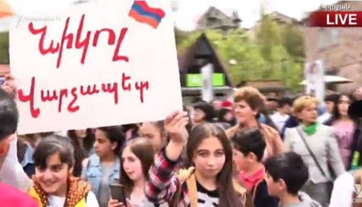 Վերջինները երգ-երաժշտությամբ, երգ ու պարով և ծաղիկներով դիմավորեցին «Քաղաքացիական պայմանագիր» կուսակցության վարչության անդամ, #ԻմՔայլը շարժման ղեկավար Նիկոլ Փաշինյանին: Նրանք վանկարկում էին՝ «Նիկոլ վարչապետ»: