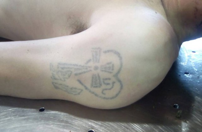 Տղամարդը թխամաշկ է, սևահեր, սև մորուքով, մարմնի տարբեր հատվածներում ունի դաջվածքներ: