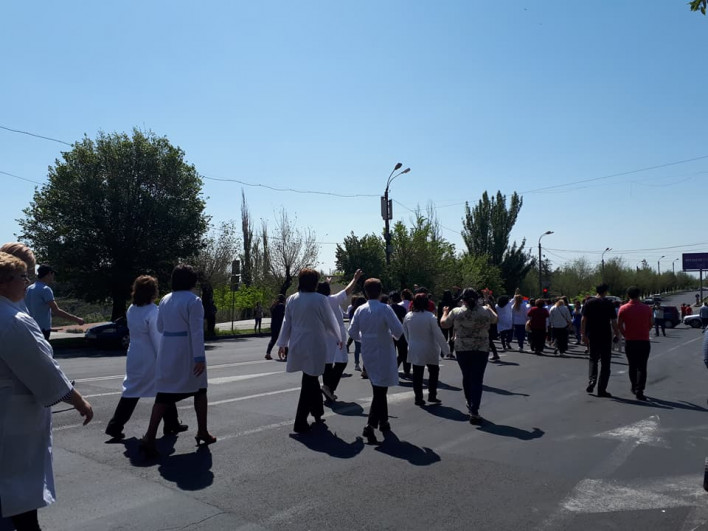 «Արմենիա» բժշկական կենտրոնի բժիշկները նույնպես միացել են բողոքի խաղաղ ակցիաներին: Այսօր՝ մայիսի 2-ի առավոտյան նրանք Հալաբյան փողոցով շարժվում են դեպի Կարեն Դեմիրճյանի անվան մարզահամերգային համալիր: Նրանք պահանջում են իշխանությունների հրաժարականը, եւ որ վարչապետ ընտրվի ԱԺ պատգամավոր, ԵԼՔ խմբակցության ղեկավար Նիկոլ Փաշինյանը: