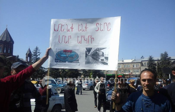 Ցուցարարներին Գյումրիում միացել են Հարավկովկասյան երկաթուղիներ ՓԲԸ աշխատակիցները