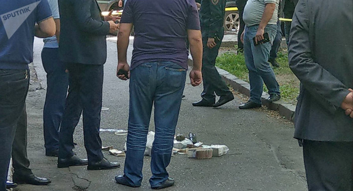 Բանկի հարակից տարածքում ասֆալտին կան թափված թղթադրամներ։ Ամենայն հավանականությամբ, հանցագործը դրանք գցել է փախուստի ընթացքում։
