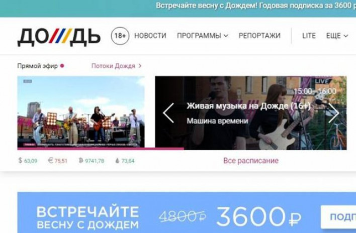 Ռուսական «Դոժդ» հեռուստաալիքի կայքի գլխավոր լոգոն՝ հայկական դրոշի գույներով