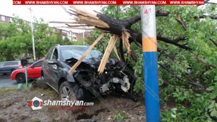 Խոշոր ավտովթար Երևանում. Դավիթ Բեկի փողոցում Mercedes ML-ը բախվել է հաստաբուն ծառին. ծառը կոտրվել է. կա վիրավոր. ՖՈՏՈՌԵՊՈՐՏԱԺ