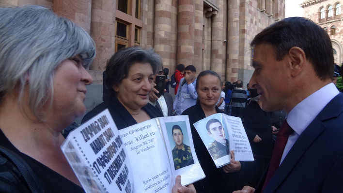 Վալերի Օսիպյանը կառավարության դիմաց խոսեց սևազգեստ մայրերի հետ (video)