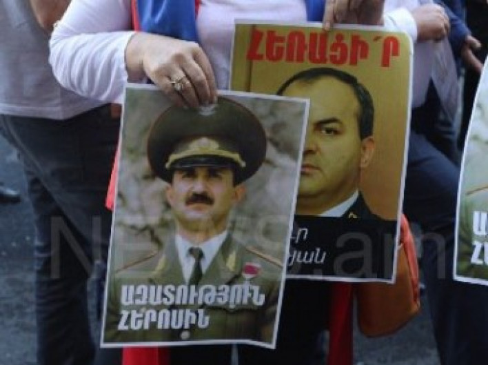 Ցուցարարների ձեռքին կան ԼՂՀ պաշտպանության բանակի նախկին հրամանատար Սամվել Բաբայանի պատկերով եւ գլխավոր դատախազ Արթուր Դավթյանի հրաժարականի պահանջով պաստառներ: Հատկանշական է, որ այլ քաղբանտարկյալների պատկերով պաստառներ չկան: Նրանք վանկարկում են «ազատություն քաղբանտարկյալներին»: