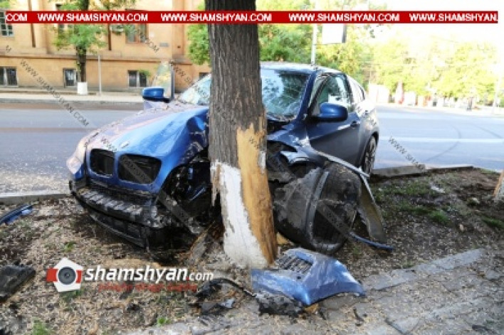 Երևանում BMW X6-ը բախվել է հաստաբուն ծառին/տեսաշար/
