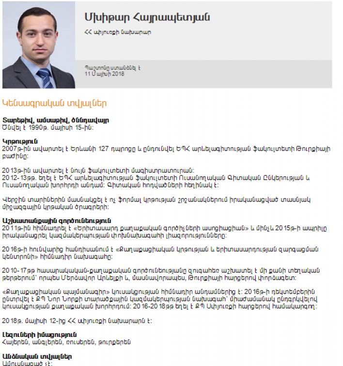 Ինչու՞ է նախարարը թաքցնում իր կենսագրության որոշ դրվագներ