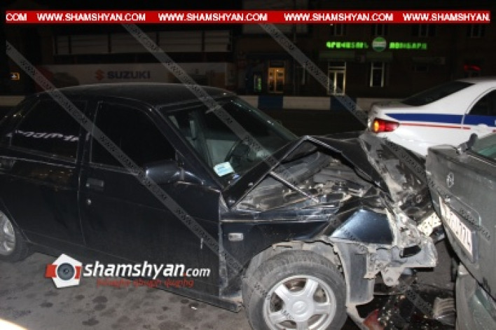 Երեկ՝ հունիսի 13-ին, խոշոր ավտովթար է տեղի ունեցել Երևանում: Ժամը 22:30-ի սահմաններում Արշակունյաց պողոտայում՝ «ՍԱՍ Ֆուդ Կորտ»-ի մոտ Նորիկ Պետրոսյանը իր վարած Lada 110 մակնիշի 35 NT 326 համարանիշի ավտոմեքենայով բախվել է ճանապարհի թույլատրելի հատվածում կայանված Opel մակնիշի 34 RU 774 համարանիշի ավտոմեքենային, որն էլ, առաջ ընթանալով, Mercedes մակնիշի 35 SG 542 համարանիշի ավտոմեքենային: Ինչպես հայտնում է ֆոտոլրագրող Գագիկ Շամշյանը, վթարի հետևանքով, ըստ նախնական տեղեկությունների, բարեբախտաբար, զոհեր և վիրավորներ չկան: Դեպքի վայր են ժամանել Ճանապարհային ոստիկանության 1-ին սպայական գումարտակի 6-րդ դասակի աշխատակիցները: Վթարի մասին Երևանի ՃՈ օպերատիվ կառավարման կենտրոնի պատասխանատու հերթապահ Արսեն Հարությունյանը տեղեկությունը փոխանցել է Ճանապարհային ոստիկանության Ճանապարհատրանսպորտային պատահարների գործերով հետաքննության և վարչական վարույթի իրականացման բաժանմունք, որտեղից ժամանել է հետաքննչական խումբը՝ բաժնի պետ Ալբերտ Նազարյանի և հետաքննիչ Արամ Կարապետյանի գլխավորությամբ, որոնց կողմից փաստի առթիվ նյութեր են նախապատրաստվում: Lada-ի վարորդ Ն. Պետրոսյանը ենթարկվել է բժշկական հետազոտության և պարզվել է, որ նա մեքենան վարել է ոչ սթափ (խմած) վիճակում: Ոստիկանությունը պարզում է մյուս վարորդների ինքնությունը: Լուսանկարները՝ Սմբատ Պետրոսյանի