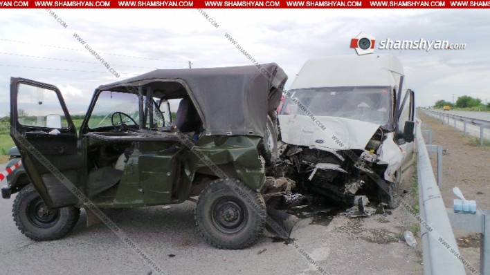 Այսօր՝ հունիսի 19-ին, խոշոր ավտովթար է տեղի ունեցել Արարատի մարզում: Ժամը 15:15-ի սահմաններում Երևան-Երասխավան ավտոճանապարհի 21-րդ կմ հատվածում բախվել են Ford Transit մակնիշի 069 ԼV 61 համարանիշի և Վիլիս մակնիշի ՊՆ 0982 Մ համարանիշի ավտոմեքենաները: