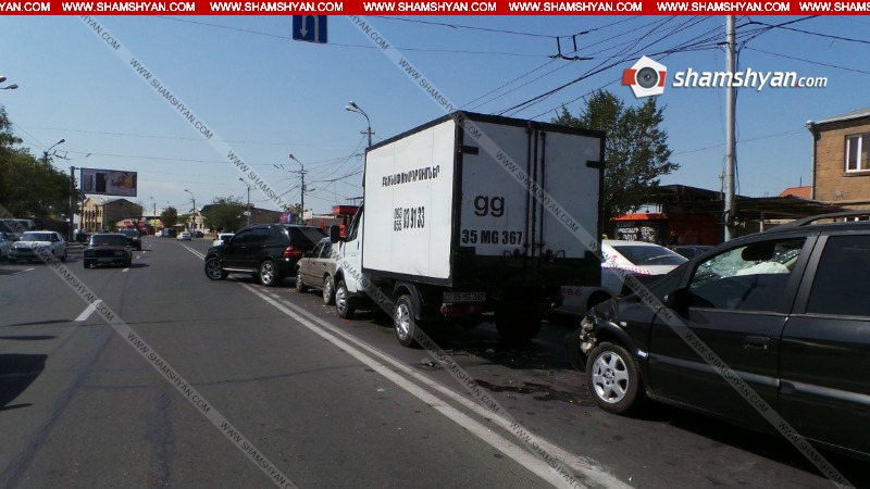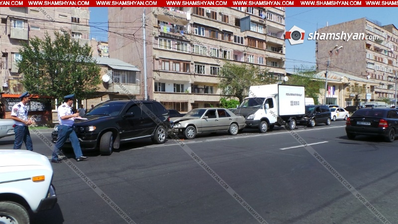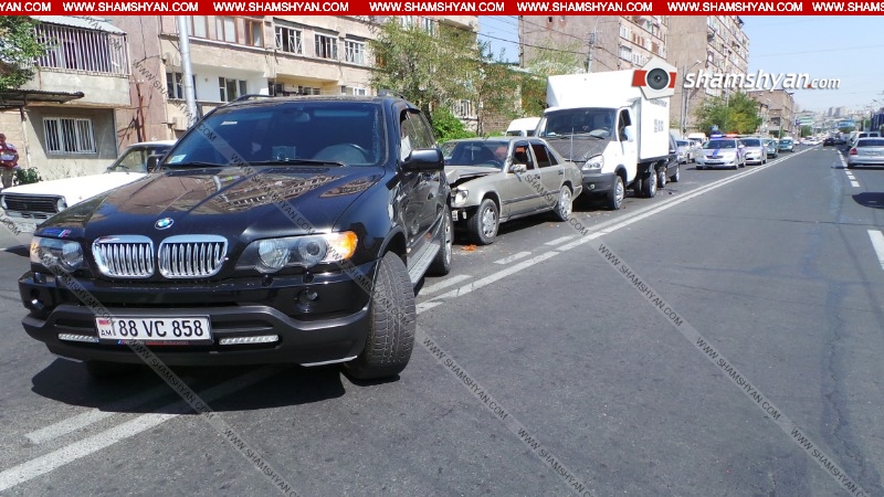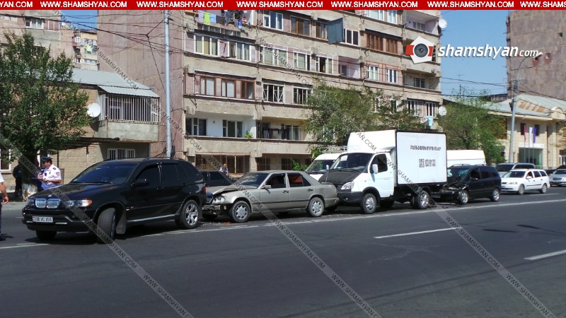 Շղթայական ավտովթար Երևանում. «Երևան Սիթի»-ի մոտ բախվել են BMW X5-ը, Mercedes-ը, Opel-ն ու բեռնատար ГАЗель-ը. կա վիրավոր. ՖՈՏՈՌԵՊՈՐՏԱԺ
