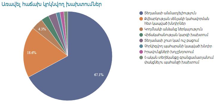 Հիմնականում խախտումները վերաբերում են տեղամասի անմատչելիությանը, քվեարկության սենյակի կահավորմանը, կողմնակի անձանց ներկայությանը: