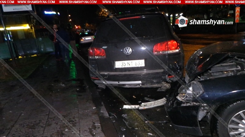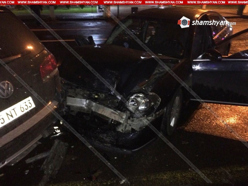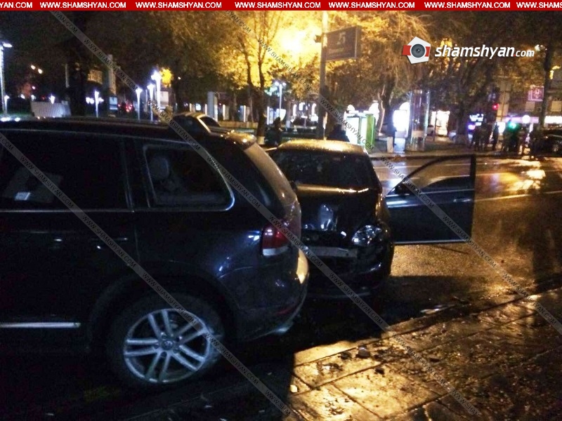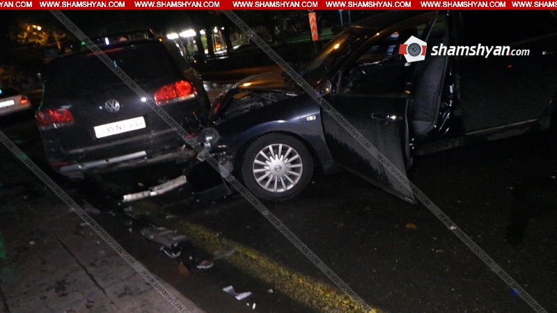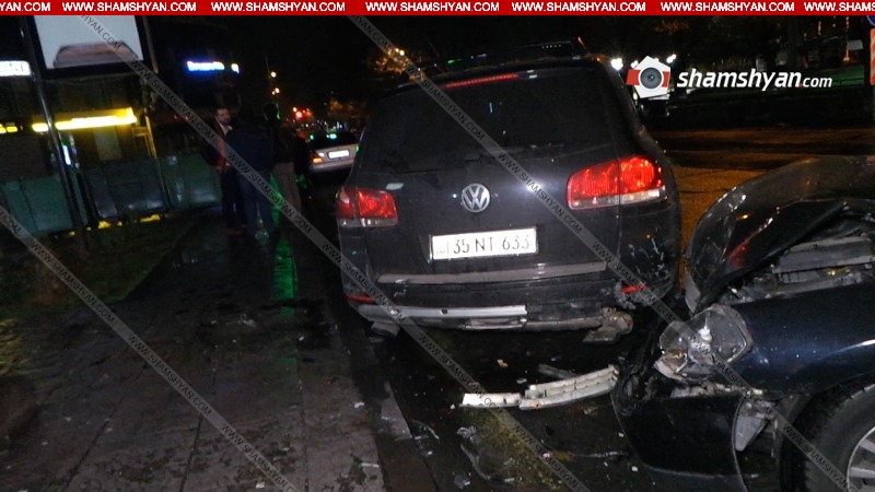 Այսօր՝ դեկտեմբերի 1-ին, խոշոր ավոտվթար է տեղի ունեցել Երևանում։ Ժամը 03։30-ի սահմաններում Թումանյան-Տերյան փողոցների խաչմերուկում բախվել են Արարատի մարզի Գեղանիստ գյուղի բնակիչ՝ 24-ամյա Փայլակ Թևանյանի վարած Hyundai մակնիշի 452 II 02 համարանիշի և Երևան քաղաքի Սարմենի փողոցի բնակիչ՝ 34-ամյա Ռաֆֆի Գդլյանի վարած Nissan մակնիշի 35 QZ 159 համարանիշի ավտոմեքենաները։ Ինչպես դեպքի վայրից հայտնում է ֆոտոլրագրող Գագիկ Շամշյանը, բախման հետևանքով էլ Nissan-ը բախվել է ճանապարհի թույլատրելի հատվածում Լևոն Բարխուդարյանի կողմից կայանված Volkswagen Tuareg մակնիշի 35 NT 633 համարանիշի ավտոմեքենային։ Վթարի հետևանքով Hyundai-ի վարորդ Փ. Թևանյանը, նրա ուղևոր՝ Երևանի բնակիչ, 28-ամյա Շահեն Հարությունյանը և Nissan-ի ուղևորներ Գաբրիել Բադոյանն ու Հովսեփ Ադորյանը մարմնական վնասվածքներով տեղափոխվել են «Էրեբունի» բժշկական կենտրոն։ Դեպքի վայր են ժամանել Ճանապարհային Ոստիկանության 1-ին սպայական գումարտակի ծառայողներն ու արտակարգ իրավիճակների նախարարության փրկարար ծառայության հրշեջ փրկարարները։ Փրկարարները հոսանքազրկել են ավտոմեքենաները, փակել գազաբալոններն ու սահմանազատել տարածքը։ Վթարի մասին Երևանի ՃՈ օպերատիվ կառավարման կենտրոնի պատասխանատու հերթապահ Գարիկ Հակոբյանը տեղեկությունը փոխանցել է Ճանապարհային Ոստիկանության անապարհատրանսպորտային պատահարների հետաքննության և վարչական վարույթի իրականացման բաժանմունք, որտեղից ժամանել է հետաքննչական խումբը՝ ավագ հետաքննիչ Խաչիկ Գևորգյանի գլխավորությամբ։ Օպերատիվորեն ժամանել է նաև ապահովագրական ընկերության ներկայացուցիչը։ Ֆոտոլրագրողը հայտնում է, որ Hyundai-ը հաշվառված է ՀՀ Ոստիկանության հաշվեկշռում, վարորդ Թ. Փևանյանն աշխատում է Ոստիկանության Երևան քաղաքի վարչության ՊՊԾ գնդի 3-րդ հատուկ գումարտակի 2-րդ վաշտի 2-րդ դասակի հրամանատարի օգնական, իսկ վիրավոր Շ. Հարությունյանը՝ 2-րդ վաշտի հրամանատար։ Hyundai-ն ու Nissan-ը հետաքննիչի հանձնարարականով տեղափոխվեցին Երևանի ՃՈ հատուկ պահպանվող տարածք։