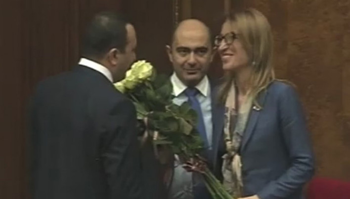 Վարդերի հեղափոխություն.Վահե Էնֆիաջյանը վարդեր նվիրեց Մանե Թանդիլյանին