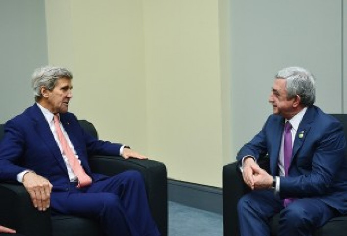 Միջուկային անվտանգության գագաթնաժողովին մասնակցելու նպատակով աշխատանքային այցով Միացյալ Նահանգների մայրաքաղաքում գտնվող Նախագահ Սերժ Սարգսյանը ապրիլի 1-ին հանդիպում է ունեցել ԱՄՆ պետքարտուղար Ջոն Քերիի հետ, այս մասին տեղեկացնում է ՀՀ Նախագահի աշխատակազմի հասարակայնության և տեղեկատվության միջոցների հետ կապերի վարչությունը։ Հանդիպմանն անդրադարձ է եղել բարձր մակարդակի հայ-ամերիկյան հարաբերությունների օրակարգին, միջազգային արդի խնդիրներին, մերձավորարևելյան ճգնաժամին, Հարավային Կովկասի տարածաշրջանում իրավիճակին, առկա մարտահրավերներին, ԼՂ հիմնախնդրի լուծման բանակցային գործընթացի ներկայիս փուլին և փոխադարձ հետաքրքրություն ներկայացնող այլ հարցերի: ՀՀ Նախագահը ԱՄՆ պետքարտուղարի հետ հանդիպմանը մեծապես կարևորել է Միացյալ Նահանգների դերակատարումը տարածաշրջանային անվտանգության ու կայունության պահպանման գործում, հատկապես՝ ԱՄՆ ներգրավվածությունը ԼՂ հիմնախնդրի խաղաղ կարգավորման գործընթացում` որպես ԵԱՀԿ Մինսկի խմբի համանախագահող: Ուելսում ՆԱՏՕ-ի գագաթնաժողովի շրջանակներում պետքարտուղար Ջոն Քերիի մասնակցությամբ 2014թ. սեպտեմբերին կայացած եռակողմ հանդիպումը, ըստ Նախագահ Սարգսյանի, ԼՂ հիմնախնդրի խաղաղ կարգավորման հարցում ԱՄՆ շահագրգռվածության օրինակներից մեկն է:
