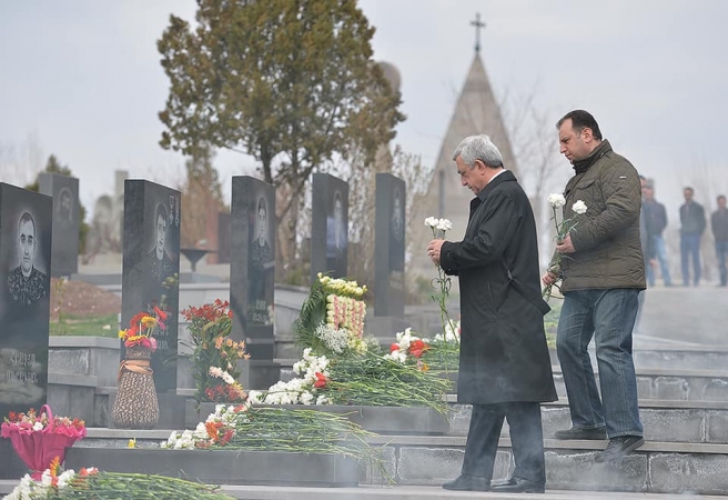 Հայաստանի Հանրապետության երրորդ նախագահ Սերժ Սարգսյանն Վիգեն Սարգսյանի ուղեկցությամբ այցելել է «Եռաբլուր» զինվորական պանթեոն՝ հարգանքի տուրք մատուցելու ապրիլյան քառօրյա պատերազմի հերոսների անմահ հիշատակին: