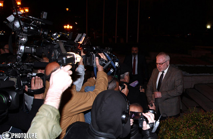 Երեկ ԼՂՀ նախագահ Բակո Սահակյանի հետ հանդիպումից հետո դրսում սպասող լրագողներին մոտեցավ միայն ռուսաստանցի միջնորդ Իգոր Պոպովը: Նա հայտնեց, որ ասուլիսը լինելու է տարածաշրջանային այցի ավարտին, շաբաթ օրը Երեւանում, իսկ ինքը մոտեցել է լրագրողներին պարզապես հայտարարություն անելու համար: Նա ներկայացրեց, թե ինչ է արել Մինսկի խումբը իրավիճակի սրումից հետո: