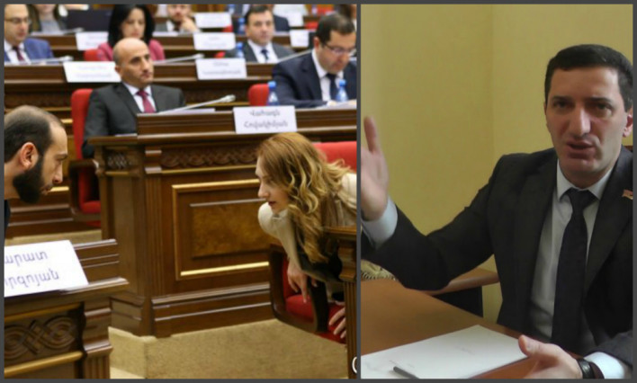 -Այդ կապույտ մազերով աղջիկը մեր խմբակցության հետ կապ չունի և նրա ԱԺ-ում հայտնվելու համար պատասխանատվություն է կրում Իմ քայլը դաշինքը: Մենք կապ չունենք:Մեր դաշինքի մեջ նման մարդիկ չկան,նախ ԱԺ գալիս ենք ոչ թե մեր մազերի գույնը ցույց տալու,այլ այն խոստումները կատարելու,որոնք նախընտրական քարոզարշավի ժամանակ տվել ենք մեր ընտրողին,ժողովրդին:Այսօր կարծես որոշ պատգամավորներ մոռացել են ,թե ինչի համար են այնտեղ: