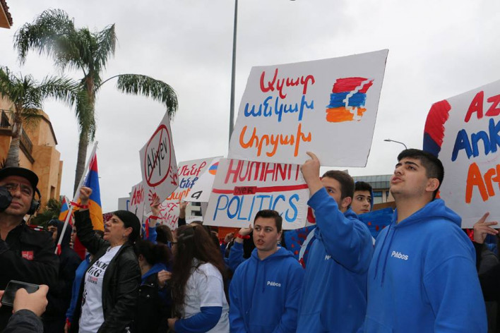 Միացյալ Նահանգների հայ համայնքի ավելի քան 3.500 ներկայացուցիչներ ուրբաթ օրը հավաքվել են Լոս Անջելեսում Ադրբեջանի հյուպատոսության շենքի առաջ` բողոքելով Արցախի հանդեպ Բաքվի բարբարոսական հարձակումների դեմ, որոնց ընթացքում խաղաղ բնակիչներն ու երեխաները նույնպես գտնվել են նրանց ագրեսիայի թիրախում, հայտնում է asbarez.com-ը։